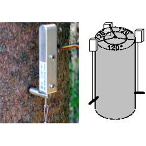 用途:DV是專門用來連續測量樹干縱向變化(不是生長)的。樹干的長度因其含水量, 風和彎曲而發生變化,因此樹干縱向變化是一個可以用來判斷樹體含水量(干旱程度),競爭壓力和機械壓力的參數。