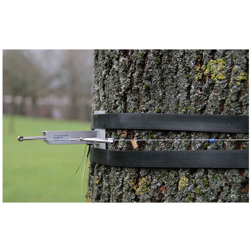 DC3和DC4是DC1改進(jìn)版本。鋼絲繩的拉力改為徑向設(shè)置。這樣鋼絲繩對(duì)樹(shù)的壓力和樹(shù)徑無(wú)關(guān),不同樹(shù)徑的測(cè)量結(jié)果可直接比較。傳感器通過(guò)一個(gè)由熱膨脹系數(shù)低的合金制成的鋼絲繩固定在樹(shù)上。用小塑料環(huán)減少鋼絲繩對(duì)樹(shù)的壓力,并減少摩擦阻力,大大提高靈敏度。